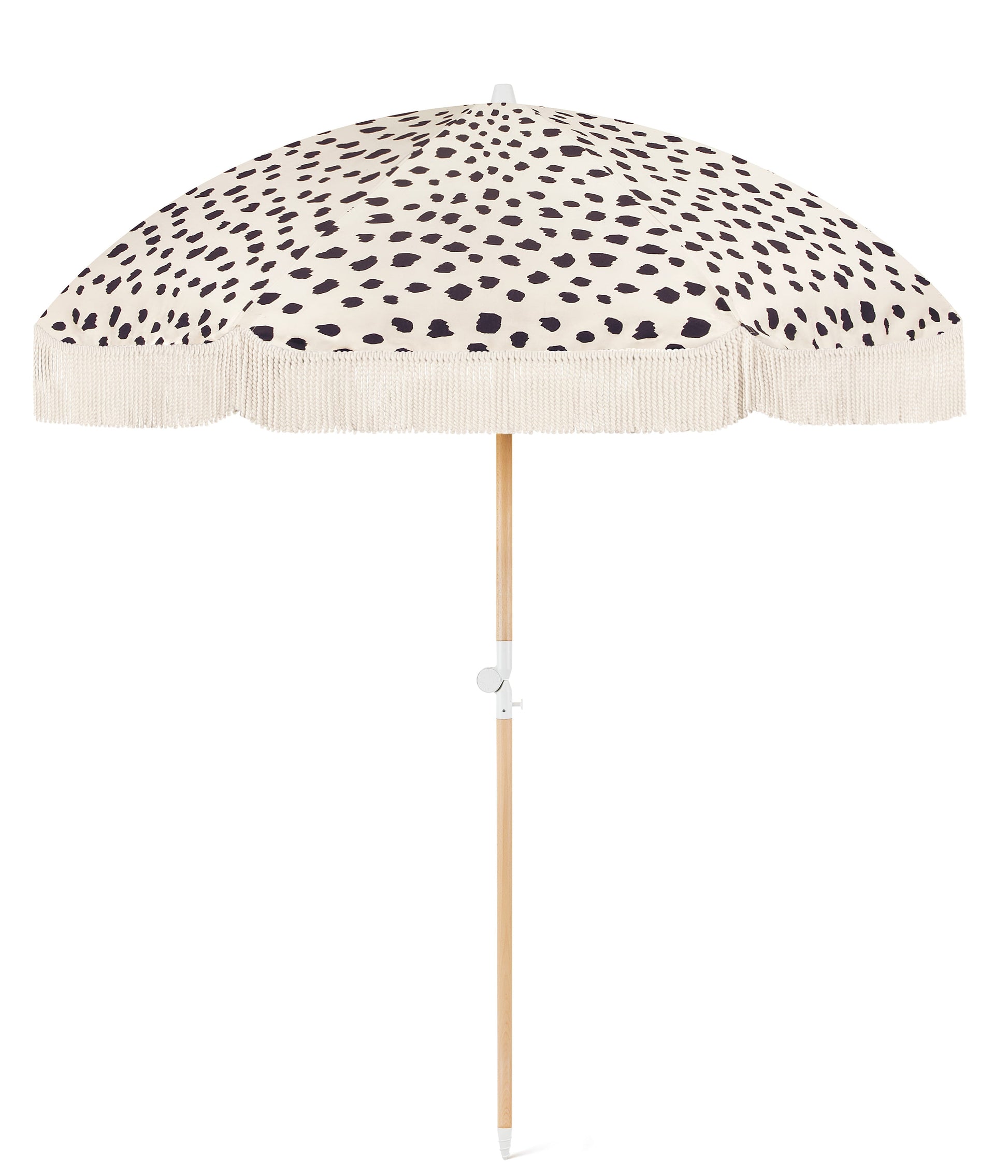 Our timeless beach umbrella with premium finishes and UPF50+ fabric. Designed for long sunny days in our Black Sands signature print. Made with RPET (recycled) premium fabric.